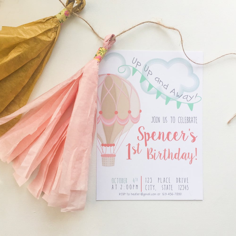 Up, Up, and Away! Hot Air Balloon Theme Birthday Invitation